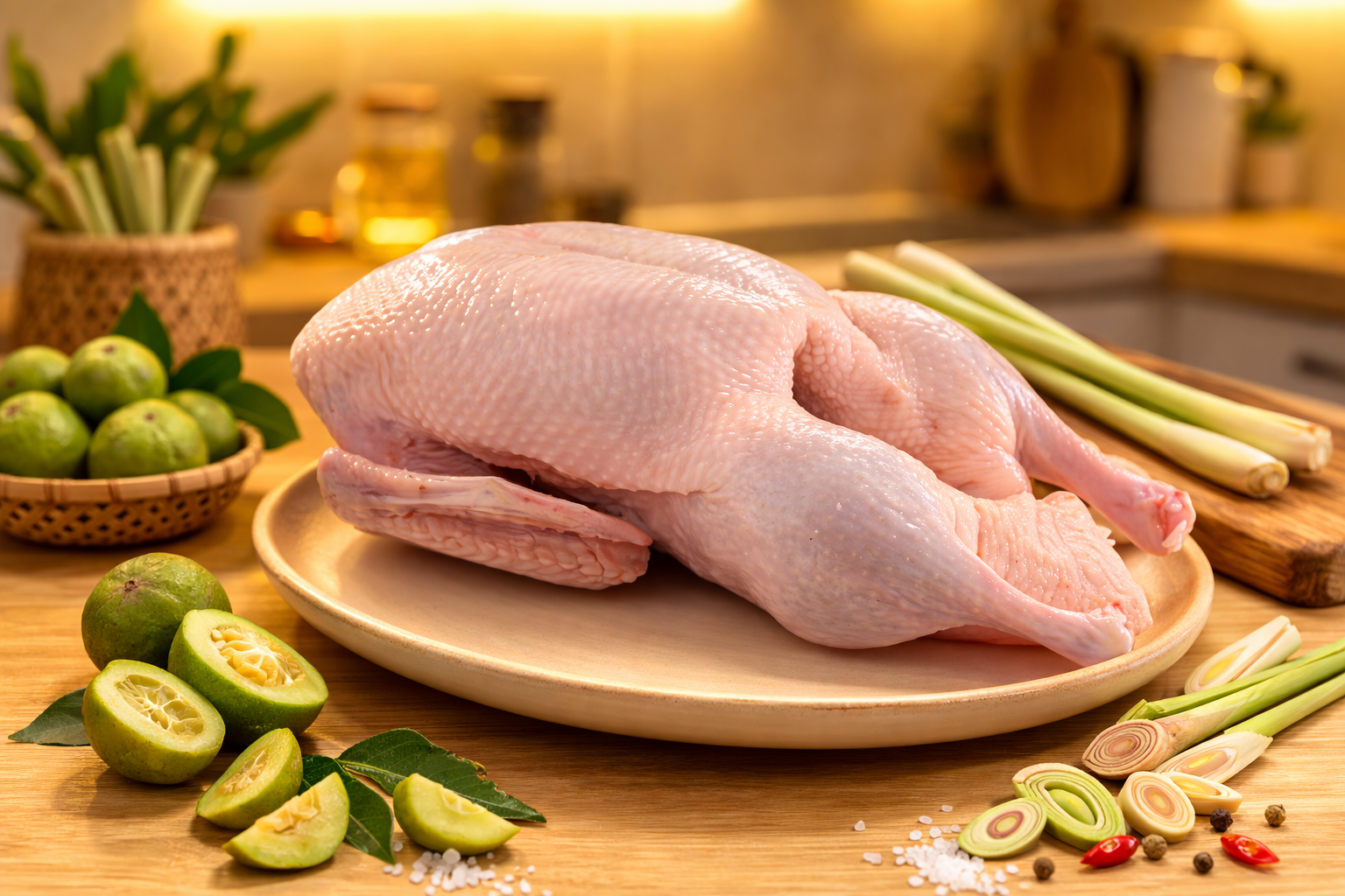 Làm sạch : Bỏ nội tạng, mỡ, phổi, hậu môn